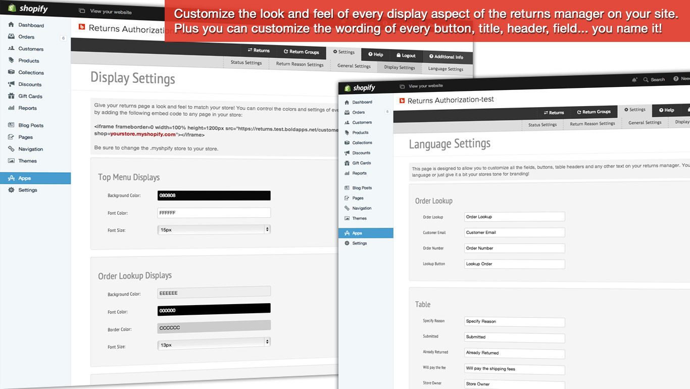 The app has a language manager that allows you to control all the text customers see displayed on the front end on the returns manager. You can change the wording on any field, text header, buttons, title etc… You name it!
