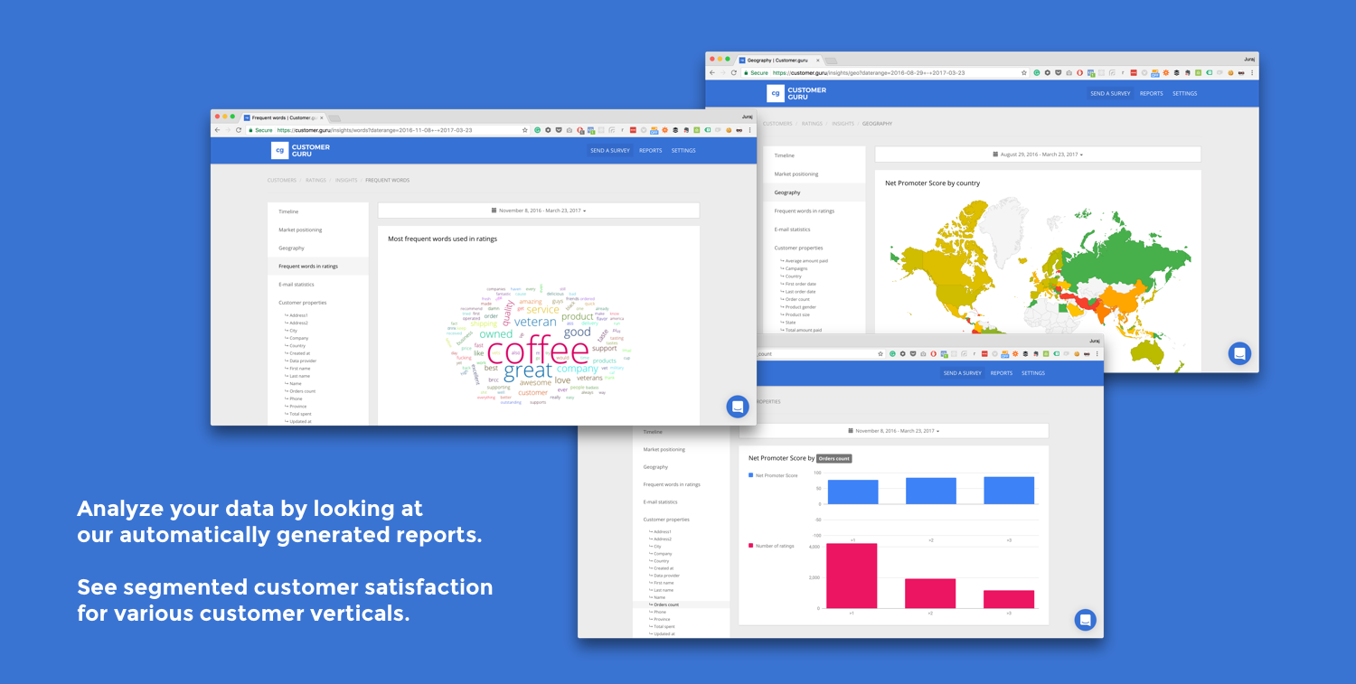 A single number representing your aggregated customer satisfaction doesn't tell you the whole story. With Customer.guru, you can dive into your data.