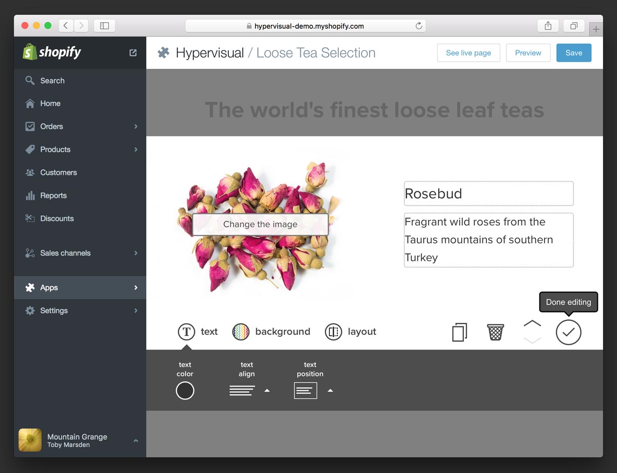 It works for products, collections, blog posts and pages, as well as your homepage, so you can build beautiful landing pages in a snap.
